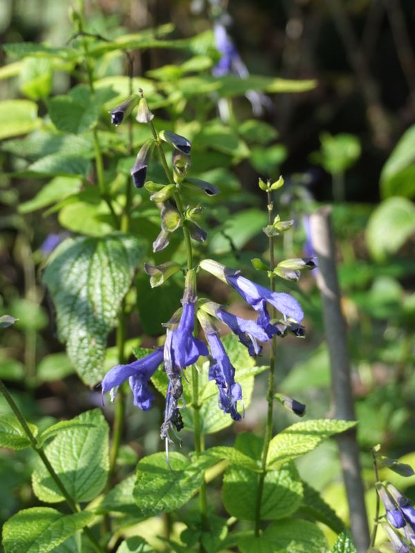 Sehr schöne Pflanze mit enzianblauen Blüten. Die Art stammt ursprünglich aus Südamerika. Der Geruch der weichen Blätter erinnert leicht an schwarze Johannisbeere. Die Art verträgt nur geringe Fröste, und sollte deshalb in kühleren Lagen im Haus überwintert werden. Sie treibt dann im Frühjahr aus dem Wurzelstock wieder aus. Die vorhandene Pflanze ist leider im strengen Winter 2009 erfroren.